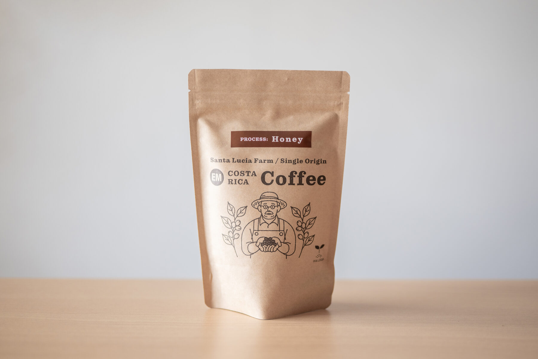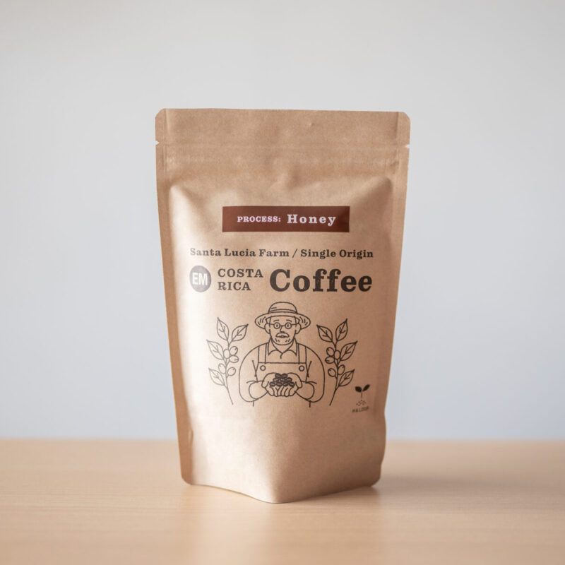コスタリカのサンタルシア農園で、EM(有用微生物群)を活用し、農薬を使わず環境に配慮して育てられた生豆を使用しています。その豆を、沖縄県沖縄市にある「豆ポレポレ」さんにて、ハニー製法ならではの風味と個性を最大限に引き出す焙煎で仕上げていただいています。